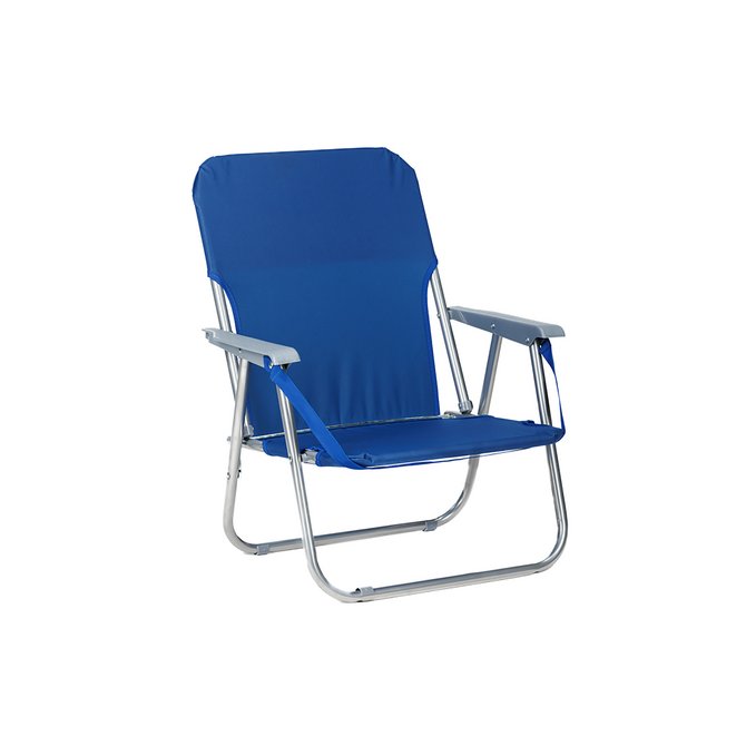 Sklopiva stolica sa naslonom za ruku 60742 izrađena je od materijala u tamno plavoj boji, dok je osnova stolice izrađena od metala i poseduje naslon za ruke. Ojačan PE (polietilen) znači da je u pitanju polietilenski materijal koji je dodatno ojačan radi veće izdržljivosti i otpornosti. Idealna je za kampovanje ili pecanje, za boravak u prirodi, a može vam poslužiti i za odmor u bašti.