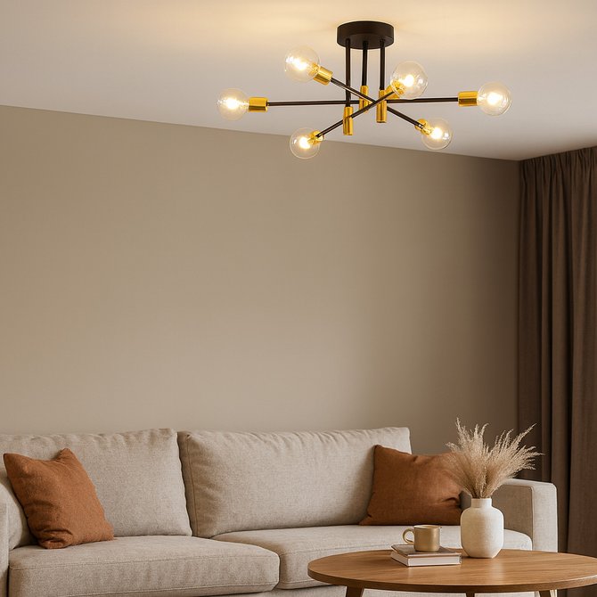 BB LINK luster Vesta 322 izrađena je od izdržljivog aluminijuma, što obezbeđuje dug vek trajanja i stabilnost, dok je kombinacija crne i zlatne boje doprinela elegantnom i luksuznom vizuelnom utisku. Dimenzije svetiljke su 830 mm dužine i 320 mm visine, što je čini upečatljivim dekorativnim elementom u svakom enterijeru. Radi na nazivnom naponu od 220–240V AC uz frekvenciju od 50/60Hz, što je standardno za većinu domaćih i komercijalnih elektroinstalacija. Opremljena je sa šest grla tipa G9, koja podržavaju izmenjive sijalice, omogućavajući korisnicima fleksibilnost u odabiru vrste i jačine svetla. Namenjena je za nadgradnu montažu, što olakšava instalaciju bez potrebe za ugradnim radovima. Svetiljka pripada Klasi I električne zaštite, što znači da je opremljena osnovnom izolacijom i zahteva uzemljenje radi dodatne sigurnosti. Sa IP20 stepenom zaštite, pogodna je isključivo za unutrašnju upotrebu u suvim prostorijama.