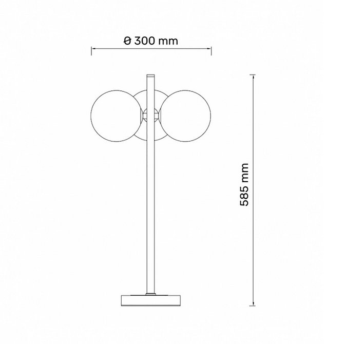 Dimenzije: Ø 300 mm; visina 585 mm (kugla Ø 150 mm)