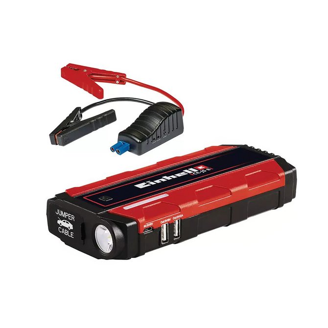 EINHELL starter baterija CE-JS 8 109151 je kompaktna, baterija za startovanje i obezbeđenje energije koju je dobro imati u automobilu i kada ste u pokretu. Sa jednom jedinicom, možete da pokrenete automobil kada je baterija ispražnjena a takođe možete brzo i lako napuniti mobilne telefone, laptopove, fotoaparate, itd. Litijum-polimerna baterija visokog kapaciteta od 3 x 2500 mAh (računski) obezbeđuje svu potrebnu snagu. Status punjenja je prikazan na LED displeju. LED radna lampica na maloj jedinici je stalno uključena, stroboskop i SOS signal za razne hitne situacije takođe može biti veoma zgodan za korišćenje. Prenosiva Power Bank ima 5V / 2A USB i izlaz za brzo punjenje što olakšava punjenje raznih uređaja. Uključeni su i kratkospojni kablovi sa potpuno izolovanim terminalnim stezaljkama i zaštitom od preopterećenja za povezivanje sa Power Bank, kabl za brzo punjenje (USB adapter kablom) za punjenje energetske stanice i praktični zaštitni kofer za skladištenje.