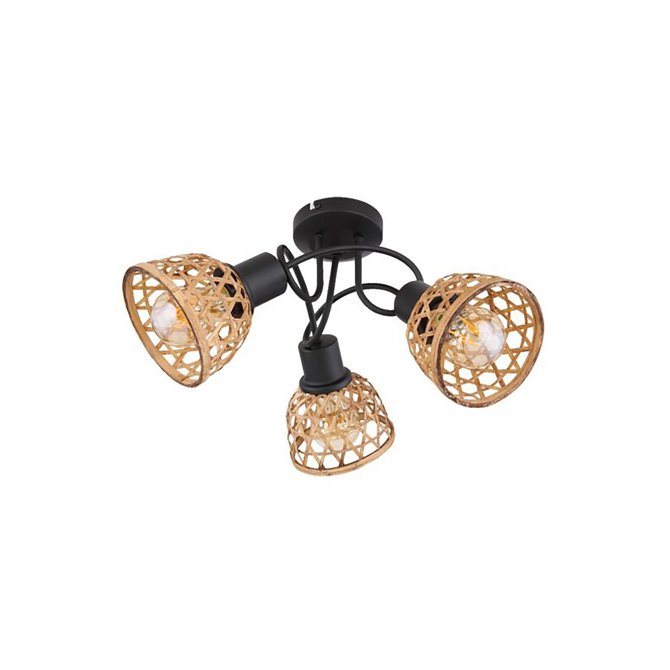 GLOBO plafonjera Wenna 54053-3D sastoji se od tri zakrivljene, crne metalne grane, na koje su fiksirana tri E27 grla obložene crno-mat metalom, koja imaju oblikovane mrežaste abažure od bambusa. One mogu biti opremljene odgovarajućim sijalicama po vašem izboru, što vam omogućava da pojedinačno odredite boju svetla i jačinu. Sa tri sijalična grla, omogućava snažno i efikasno osvetljenje prostora poput hodnika, dnevne ili spavaće sobe. Zahvaljujući savremenom 3D dekorativnom efektu, lampa pruža elegantan vizuelni doživljaj koji prostor čini svetlijim i toplijim. Iako nije dimabilna, ova lampa nudi dovoljno svetlosne snage (15W) za manje i srednje prostorije, uz standardni napon od 230V. Izrađena od kvalitetnih materijala sa IP20 stepenom zaštite, pogodna je za unutrašnju montažu, van prostora izloženih vlagi.