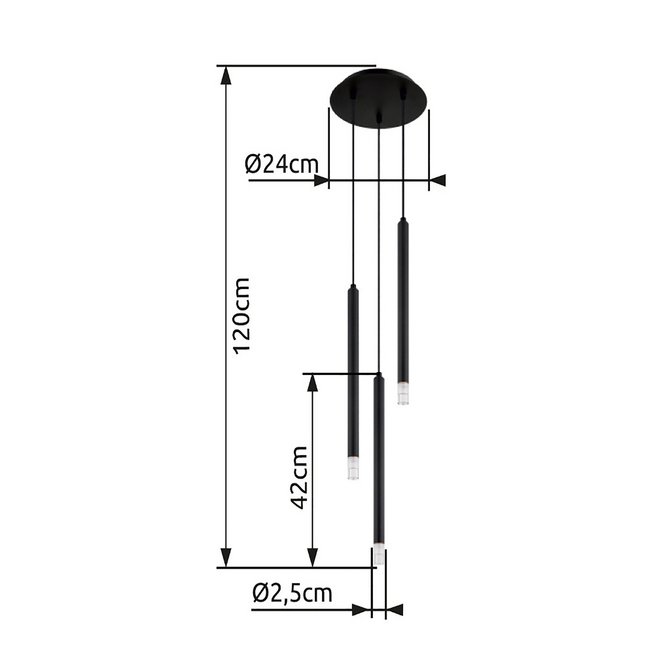 GLOBO visilica Blake 15629-3 opremljena je grlima tipa G9 LED, sa maksimalnom snagom od 4 W po sijalici, a svetlosni efekat može biti prilagođen zahvaljujući mogućnosti dimovanja, u zavisnosti od tipa sijalica koje se koriste. Visina visilice iznosi 1200 mm, dok je prečnik glavnog tela 240 mm, abažura 25 mm, a zidne ploče 200 mm, što je čini pogodnom za različite prostore, od dnevnih soba do trpezarija. Radi na standardnom naponu od 230 V, sa stepenom zaštite IP20, i spada u klasu zaštite I, što podrazumeva obavezno uzemljenje. Kombinacija akrilnih i metalnih materijala u završnoj obradi crne i satin (saten) boje doprinosi sofisticiranom i diskretnom izgledu lampe, čineći je idealnim izborom za moderni enterijer.