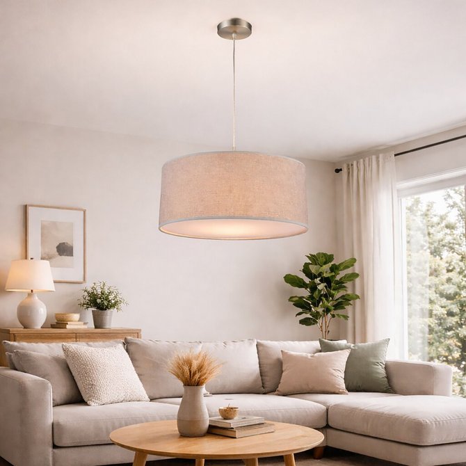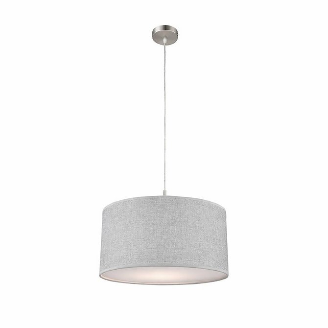 GLOBO visilica Paco 15185H je svedena, moderna visilica sa cilindričnim tekstilnim abažurom u kombinaciji sive i saten sive boje dok je metalna konstrukcija u mat nikl boji. Visina visilice iznosi 1400 mm, dok je prečnik abažura Ø 400 mm, pružajući dobar balans između proporcija i osvetljenja. Zaštita IP20 je pogodna za unutrašnju upotrebu u prostorijama koje nisu izložene vlagi. Idealna za savremeni enterijer, pruža prijatnu, difuznu svetlost i atmosferu udobnosti. Sijalica se ne isporučuje u paketu. Preporučuje se LED sijalica radi uštede energije i dugog radnog veka.