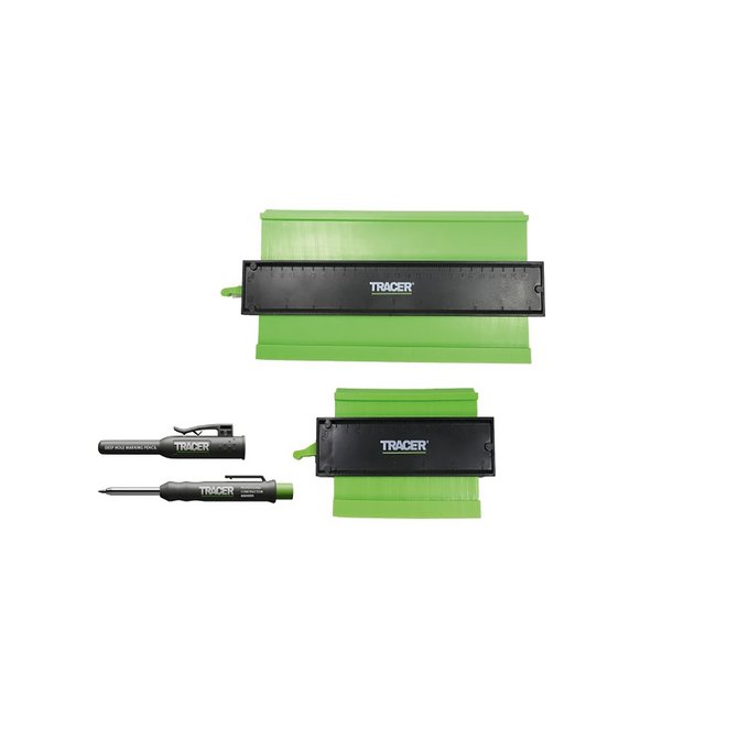 JANSER 262488800 meni alat za rezanje 130 mm i 250 mm je najnoviji alat za merenje iz TRACER asortimana. Dostupan u dimenzijama 130 mm i 250 mm, ovaj robusni alat je dizajniran za lako precrtavanje profila, uključujući podne obloge, lajsne i cevi. Zahvaljujući mehanizmu za zaključavanje, profilni merač se može fiksirati u željeni oblik, što omogućava precizno prenosenje kontura na radnu površinu. Set se sastoji od: profilnog merača 130 mm, profilnog merača 250 mm i olovke za duboke rupe.