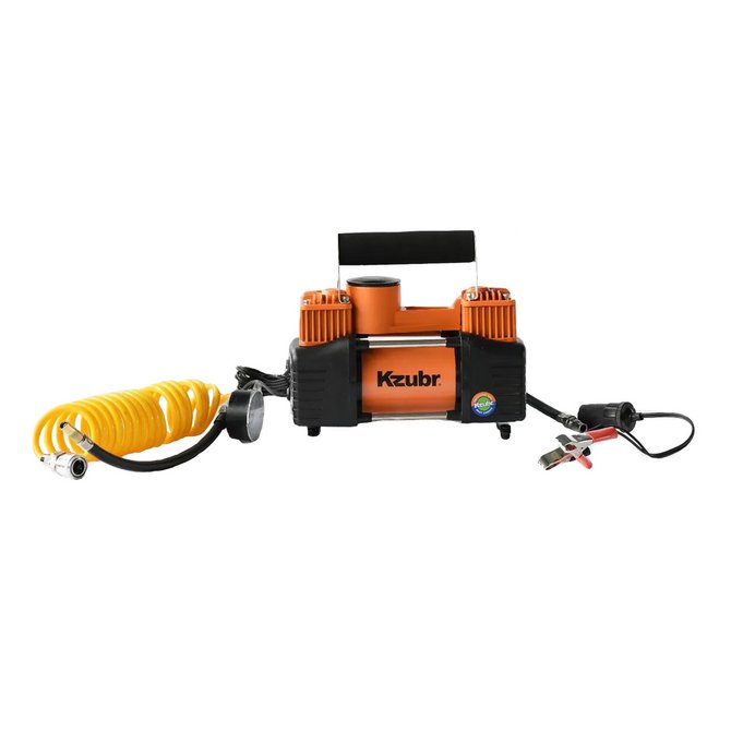 KZUBR kompresor za gume KAC 12V je prenosivi kompresor dizajniran za brzo i efikasno duvanje guma, idealan za upotrebu u automobilima, kamionima, motociklima i biciklima. Ovaj kompresor je opremljen sa dva cilindra, što omogućava brzo naduvavanje guma za manje od nekoliko minuta. Radni pritisak od 150 psi garantuje snažnu i efikasnu kompresiju. Dužina kabla od 3 metra i creva za vazduh od 0,5 metra pružaju dovoljnu fleksibilnost za lako pristupanje svim točkovima vozila.