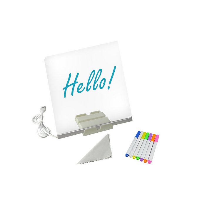 Led akrilna tabla za crtanje YW13173-3372 Tabla ima dimenzije 20 x 20cm i namenjena je za pisanje i crtanje. Ostavite poruku, kreirajte poklon i uspomenu, napravite jedinstvenu dekoraciju i ukrasite svoj prostor. Tabla ima LED osvetljenje, te je Vaša poruka vidljiva i noću. Isporučuje se sa flomasterima u više boja za pisanje i krpicom za brisanje. Lampa je idealna kao osvetljenje i dekoracija u dečijoj sobi, dnevnoj sobi ili hodniku za ostavljanje poruka. Napaja se putem adaptera, koji nije uključen u paket.