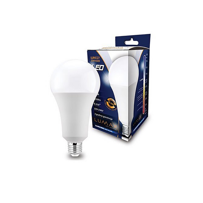 LUMAX led sijalica 27-18W sa standardnim E27 grlom idealna je zamena za klasične sijalice jačine od 130 do 180W, uz znatno manju potrošnju energije. Pruža jačinu svetlosti od 1750 lumena, sa toplom belom bojom svetla od 3000K, što je čini savršenim izborom za stvaranje prijatne atmosfere u stambenim, ali i poslovnim prostorima. Širok ugao osvetljenja od 220 stepeni omogućava ravnomerno osvetljenje bez tamnih zona. Kućište je izrađeno od kombinacije plastike i aluminijuma, što doprinosi boljem odvođenju toplote i dugotrajnosti. U srcu sijalice nalazi se kvalitetan Samsung LED čip, koji garantuje radni vek od čak 35.000 sati. Namenjena je za radni napon od 220 do 240 volti, u temperaturnom rasponu od -20°C do +40°C. Sijalica nije dimabilna, a zahvaljujući energetskoj efikasnosti klase A+ i potrošnji od samo 18 kWh na 1000 sati rada, omogućava značajnu uštedu električne energije.