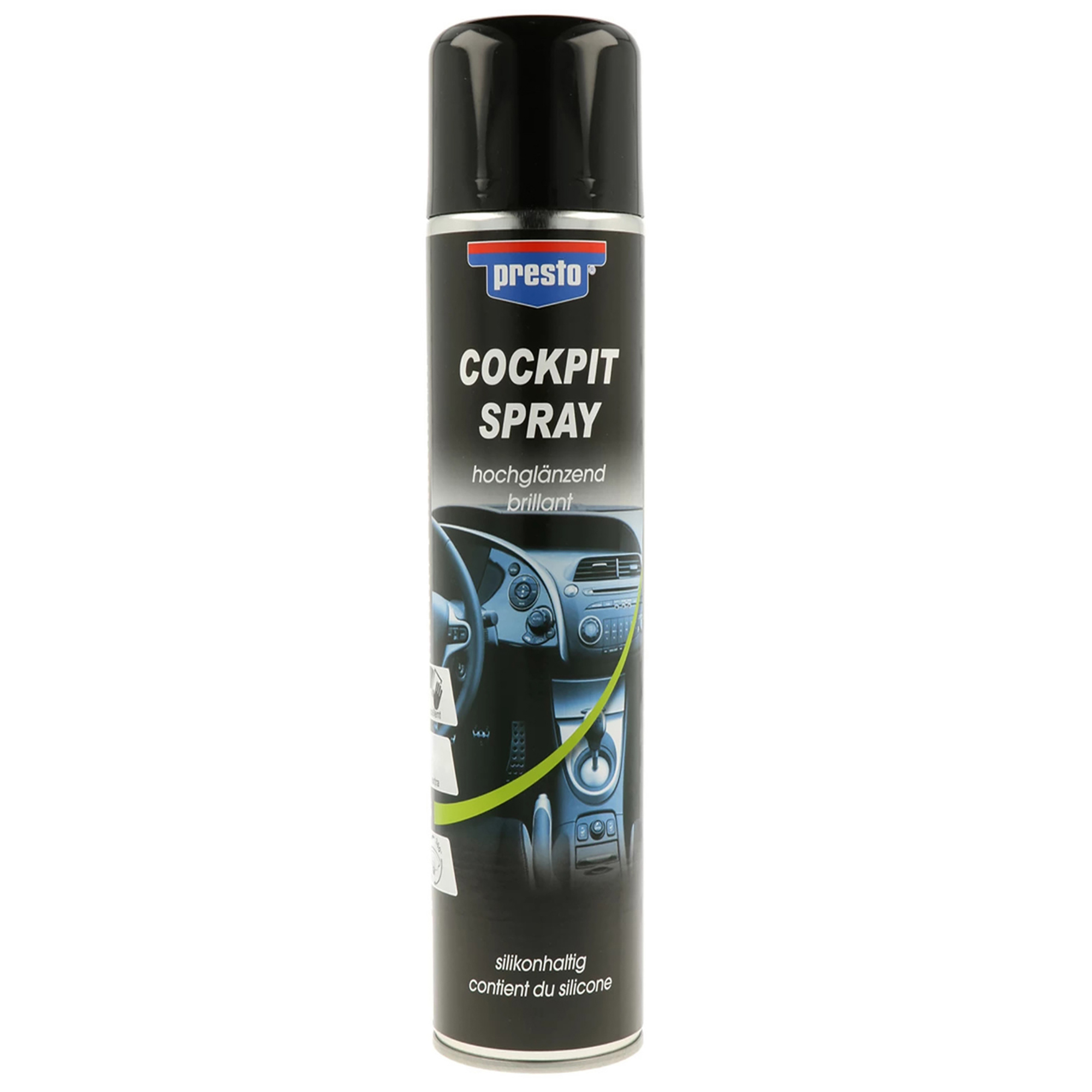 PRESTO Cockpit sprej za instrumental tablu visoki sjaj namenjen je čišćenju, zaštiti i ulepšavanju instrument table i drugih plastičnih delova u automobilu. Obezbeđuje dugotrajan sjaj i svež izgled, uz suptilan i prijatan miris. Zahvaljujući svojoj formuli, smanjuje prianjanje prljavštine i održava površine čistima duže vreme. Ne sadrži silikon i deluje antistatički, čime sprečava ponovno taloženje prašine. Prilikom upotrebe treba izbegavati nanošenje na volan i pedale, kako ne bi došlo do smanjenja stiska i mogućeg klizanja.