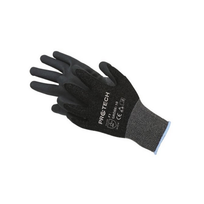 PROTECH rukavice F1 namenjene su za zaštitu od mehaničkih rizika sa površinskim učinkom izrađene su u skladu sa standardima EN 388 i EN 420. Zahvaljujući laganoj konstrukciji i platnenoj nadlanici, veoma su udobne za nošenje i omogućavaju dobru pokretljivost šake, što ih čini pogodnim kako za svakodnevne, tako i za nešto zahtevnije radne aktivnosti. Namenjene su za upotrebu prilikom izvođenja finih građevinskih radova, čišćenja, krečenja, u auto-industriji, transportu i skladištenju, stolarstvu, vrtlarstvu i sličnim poslovima. Rukavice ne zahtevaju održavanje, ne smeju se dezinficirati niti popravljati i nisu predviđene za upotrebu u blizini mašina sa pokretnim delovima, zbog rizika od zapetljavanja. Prema ISO EN 388 standardu, rukavice imaju otpornost na abraziju nivo 4, otpornost na rezanje kružnom oštricom nivo 1, otpornost na deranje nivo 2, otpornost na proboj nivo 1, dok otpornost na rezanje ravnom oštricom nije testirana (X).