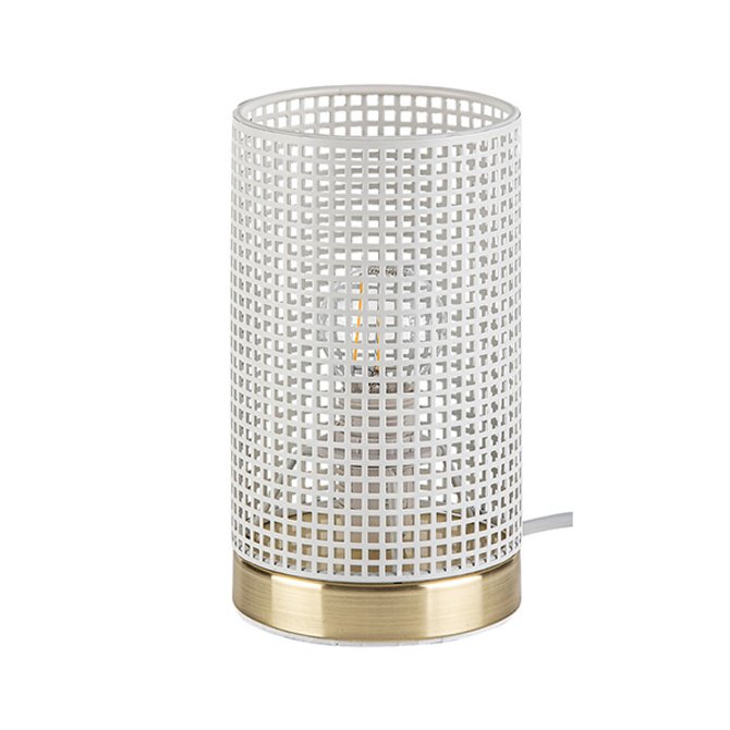 Rabalux 3179 Boogie stona lampa, moderna lampa, izrađena od metala u belo-zlatnoj boji. Sa mrežastim metalnim abažurom za poseban odsjaj na zidu. Odličan je izbor za radnu sobu ili kutak u dnevnoj ili spavaćoj sobi. Veliki izbor sijalica možete pogledati na našem sajtu.