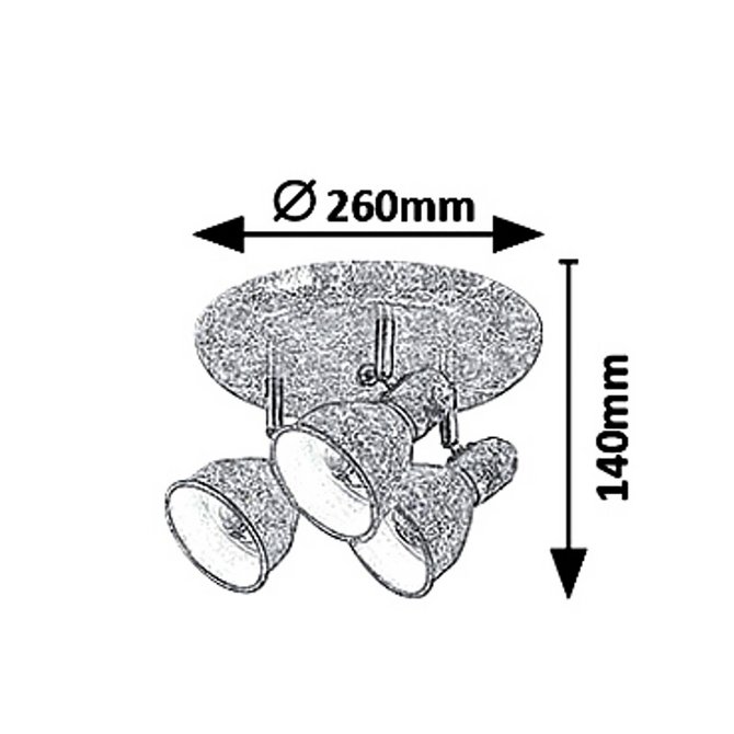 RABALUX spot lampa Thelma 5388 spaja moderan industrijski dizajn sa praktičnošću, pružajući efektno osvetljenje za svaki enterijer. Lampa je izrađena od metala u antik srebrnoj boji i opremljena je sa tri E14 grla, svaki sa maksimalnom snagom od 40 W, što omogućava snažno i ravnomerno osvetljenje prostora. Namenjena je za napajanje od 230 V / 50 Hz, sa udaljenosti od plafona od 140 mm i prečnikom od 260 mm. Opremljena je bez Wi-Fi funkcije, sa IP20 zaštitom i pripada klasi zaštite I, što je čini sigurnom za standardnu unutrašnju upotrebu.
