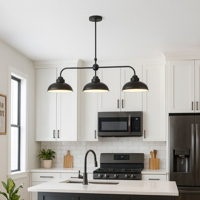 RABALUX visilica Dragan 5309 je moderna lampa sa tri metalna abažura u mat crnoj boji, idealna za trpezarije ili dnevne sobe. Opremljena je tri grla tipa E27 sa maksimalnom snagom po sijalici od 60 W i radi na standardnom naponu od 230 V/50 Hz. Sa prečnikom od 250 mm, horizontalnom širinom od 1000 mm i udaljenosti od stropa od 1070 mm, pruža dovoljno svetla i postaje centralni dekorativni element prostora, kombinujući funkcionalnost i industrijski štil.