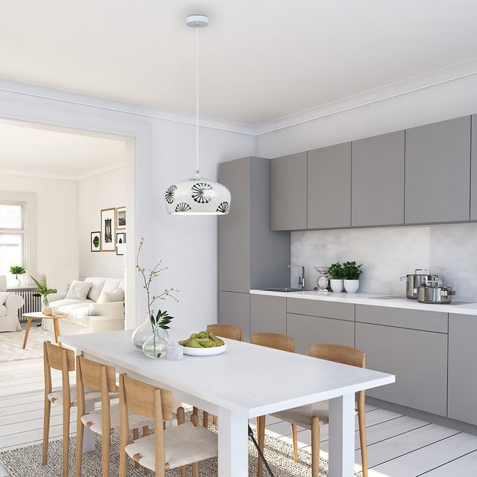 Ginger 6049 visilica izrađena je od metalnih elemenata osnove i klasičnog keramičkog abažura u obliku polulopte. Abažur je ukrašen srebrnim detalljima, koji daju elegantnu notu ovom lusteru. Može se iskorititi kao osvetljenje u više prostorija u Vašem domu, a zbog svog jednostavnog izgleda uklopiće se u svaki enterijer. Proizvod se prodaje bez izvora svetla.