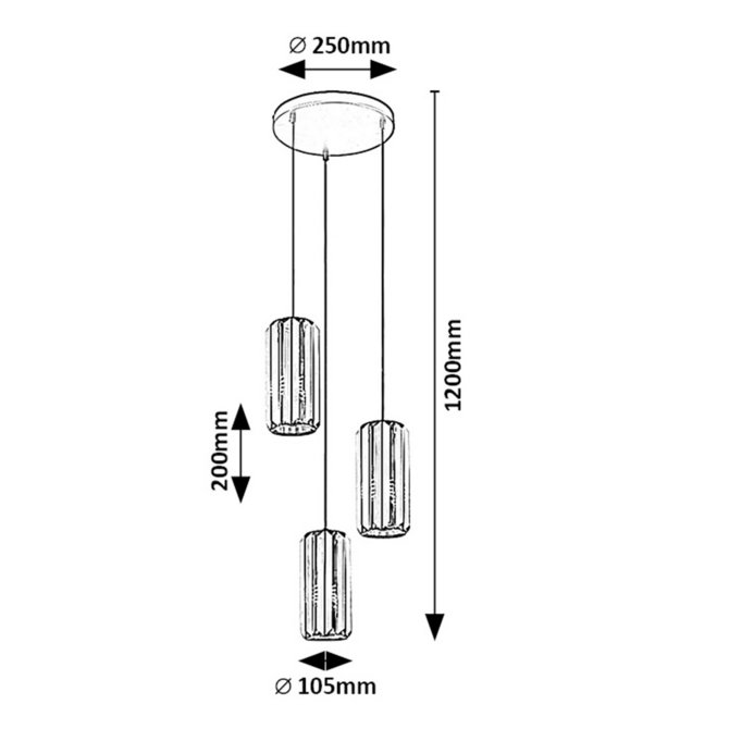 Rabalux 72255 visilica Veness je moderan dodatak enterijeru i unutrašnjoj rasveti, koja je namenjena za dnevnu sobu, spavaću, radnu sobu ili trpezariju. Luster je izrađen od metalne ovalne osnove prečnika 250mm, kojom se pričvršćuje na plafon. Ima 3 staklena abažura u boji dima i postavljena su na različitoj visini od osnove. Stakleni elementi trouglastog oblika poređani su jedan pored drugog formirajući abažur u obliku cilindra. Luster je ima maksimalnu visinu 1200mm, ima 3 sijalična grla E27, koja nose mesto za sijalicu snage do 40W. Visilica se prodaje bez sijalica, a veliki izbor istih možete pogledati na našem sajtu i uklopiti boju temperature svetla prema prostoriji za koju je namenjena.